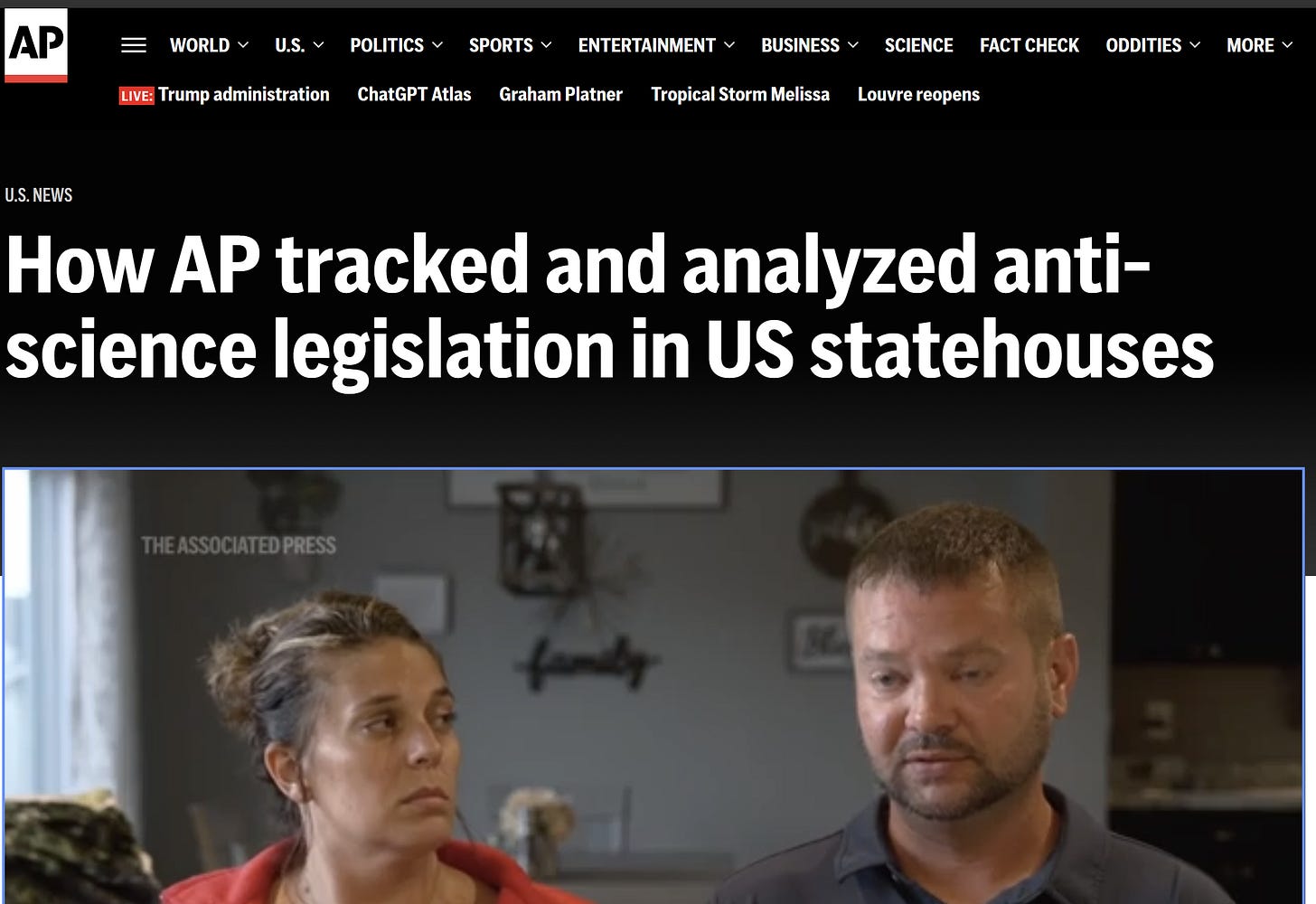 Re: How AP tracked and analyzed anti-science legislation in US statehouses