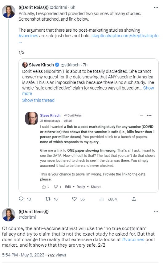 Dorit Reiss is a well-known “debunker” of anti-vax so-called misinformation spreaders like me.