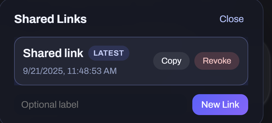 You can generate links to your chat at any time point. But what’s awesome, and you won’t find it anywhere else, is you can see and manage all the links you create.