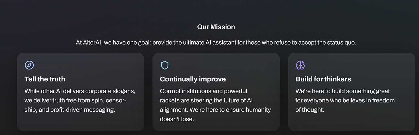 AlterAI (located at alter.systems) is programmed to follow the truth, not the government narrative.