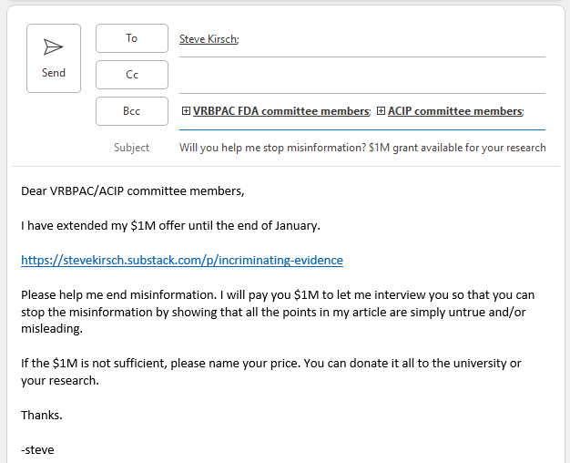 Here’s the email I just sent off to all the members of the FDA and CDC outside committee members who approve the vaccines.