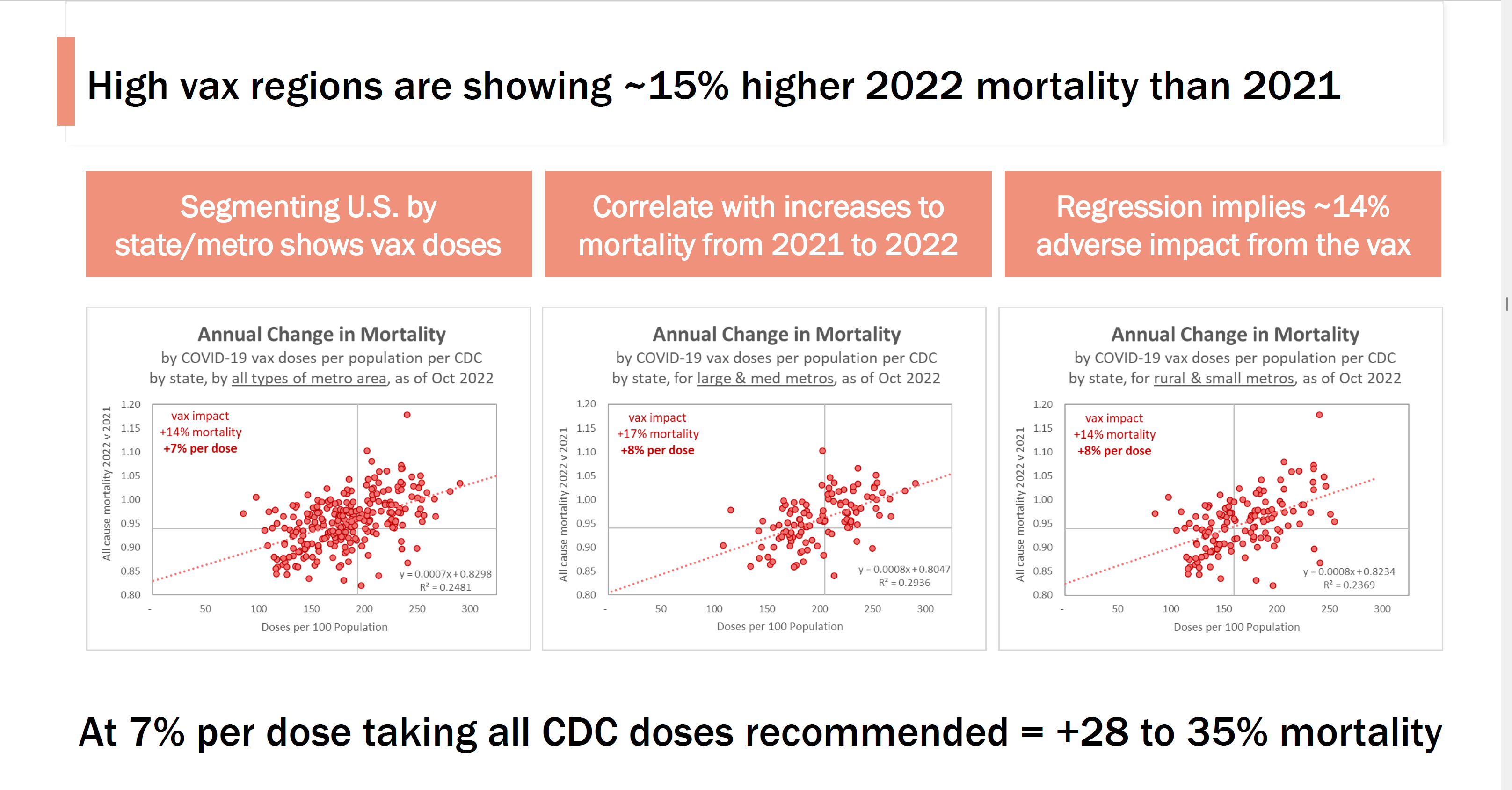 Exhausting - thanks for your effort Steve. Arguing cases with true believers always feels this way. But at least the fellow is bothering to argue and good for him for that. All these figures and graphs and statistics aside it seems like any sensible person would decide NOT to take the shot so why did the majority take it? The power of propaganda mixed with ignorance and laziness? Refusal to believe that all is not quite dandy in the state of Denmark? Keep fighting folks. No smoke without fire and the whole world knows these shots were poison or they would be lining up by the billion for their 6th booster - and they are not. Even my vaccine loving, woke, government trusting, mis,dis,mal information recognizing, father euthanizing ( to protect him of course) brother has stopped the boosters and if that is the case we are winning for sure. No doubt they will adopt our view and claim it was their owns whilst cancelling, shunning and blaming us for the whole thing. Human all too human, eh?