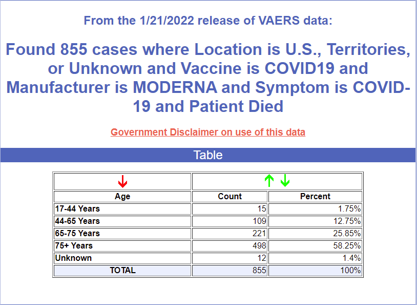If you don’t like VAERS, then we can also compute an extremely conservative causal death estimate using the work of Dr. Peter Schirmacher, one of the top 100 pathologists in the world. He found at least 30% of the people who died after vaccination were killed by the vaccine. So taking the 4270*.3=1281. Now divide by the 100M fully vaccinated (since 200M Moderna doses) and we get 12 deaths per million. So we easily still exceed the Paul Offit stopping condition by a factor of 10.