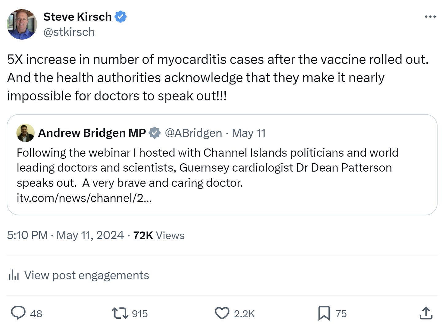 🇦🇺💉”…I’ve personally seen, as a private cardiologist in my own practice over the last couple of years, probably about a hundred people who’ve had, I believe, a moderate reaction to the vaccines - to the RNA vaccines - in the form of what I believe to be a subacute myocarditis, where the heart gets a little bit inflamed…”
