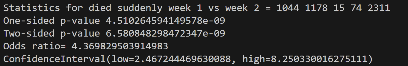 This high percentage of the total cases that are "blood clot related" does not surprise me at all. Recall from the results of my two "Worldwide Embalmer Blood Clot Surveys" that the several hundred embalmers responding to my surveys saw the "white fibrous clots" in an average of 30% of their corpses in 2022, and an average of 20% of their corpses in 2023.