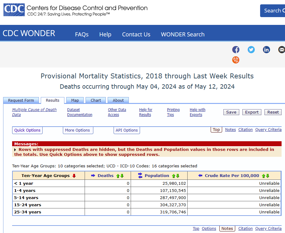 WONDER: Deaths from measles, mumps, or rubella from 2018 to the present: near 0