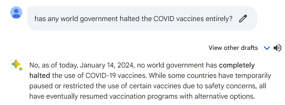 But we do not live in an honest society. There isn’t a single honest national government in the world as far as I can tell. None of them are putting a halt to the COVID shots.