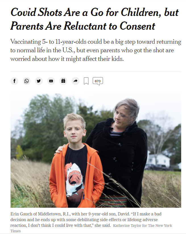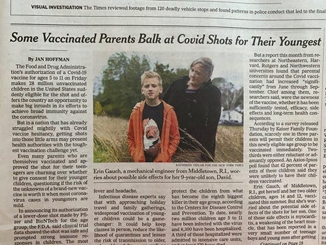 In particular note the use of the word “Some.” The story says that “scarcely one in three parents will permit their children in this newly eligible age group to be vaccinated.”