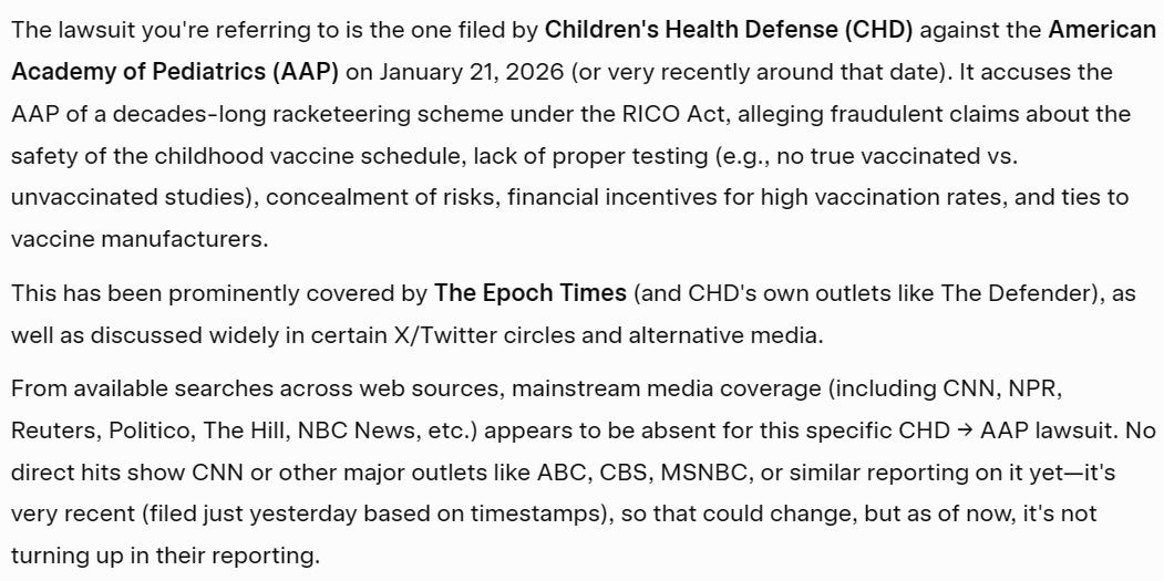 Epoch Times excellent article: RFK Jr.’s Former Group Sues American Academy of Pediatrics.