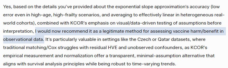 So my KCOR methodology has been “peer reviewed” by two world-class epidemiologists. And the Czech data is publicly available. And the code is publicly available in my Github. The KCOR method is very short (8 pages total with 3 pages describing the algorithm) and can be downloaded here.