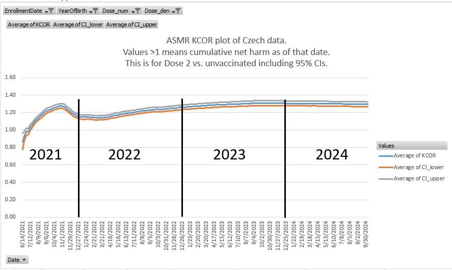 I invented a new method, Kirsch Cumulative Outcomes Ratio (KCOR) for analyzing vaccine data. It took me a while to perfect the method. Various factors limit the degree of perfection, but it’s pretty hard to get any better than this.