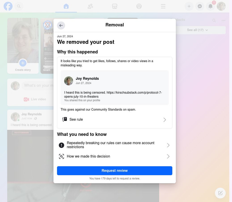 I posted the link to this substack post on Facebook, and it was immediately removed.