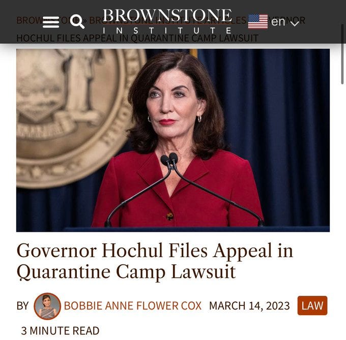 New York Governor Kathy Hochul files an appeal in the Quarantine Camp case.