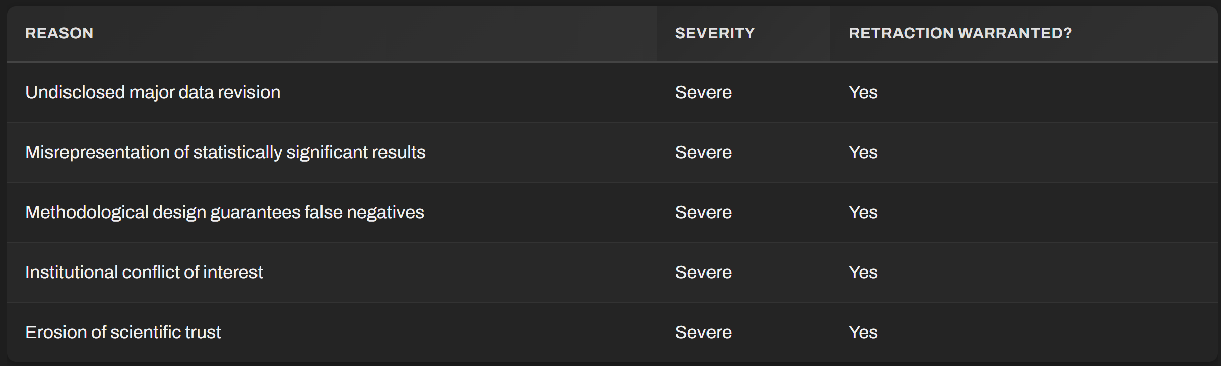 I agree. Plus, there are a several other studies that need to be retracted in order to restore trust in medical journals. For instance, another one that comes to mind is the Proximal Origins Study.