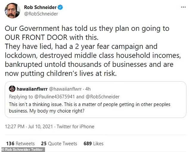 Rob Schneider gained widespread recognition as a cast member on "Saturday Night Live" from 1990 to 1994, showcasing his versatile comedic talents. Schneider has also starred in numerous successful films, including "Deuce Bigalow: Male Gigolo," "The Hot Chick," and "Grown Ups." Throughout his career, Rob has carved a distinct niche in the comedy genre, captivating audiences with his edgy observations. Besides his achievements in entertainment, Rob Schneider is also an outspoken advocate for health freedom, using his platform to raise awareness about important issues surrounding the Covid-19 pandemic and other health-related matters.