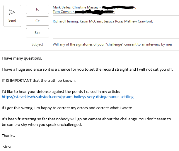 There is no way to publicly accept the challenge so that the public can see the challenge was accepted. It must be accepted via private email. We tried that. It didn’t work. We have the emails. We’ll make them public if they challenge us on that.