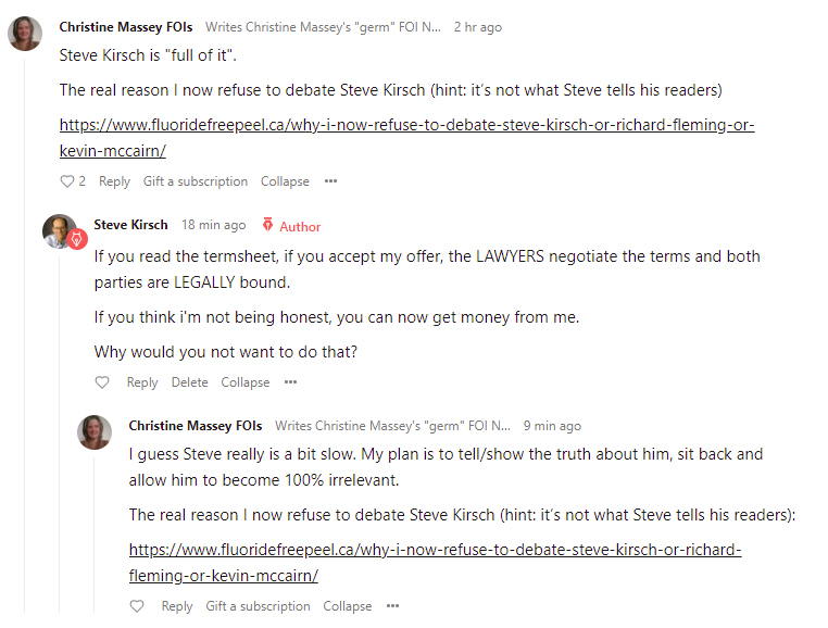 My $1M bet is faster, simpler, well specified, it doesn’t require lab work, and it rewards the prevailing party. They have no interest in taking my money. The Isolate the Truth Fund has 1.5M euros available, so they can’t use the excuse that they can’t post the collateral. There are over 20 signatories on their challenge and there are more to come. For 100 signatories, that’s just $10K per person on average. They can also do a GoFundMe to raise money and then return the proceeds when they win. Furthermore, just to make it obvious to everyone that they cannot use funds as an excuse, I’ve changed the terms to allow them to accept at the $200K level. They’ve already admitted they have $500K in pledges so they can repurpose their pledge money and double it. If they have at least 200 supporters, that is just $1K per supporter, a very modest amount. It should be easy to raise. If they were truly interested in resolving the question, this would provide objective proof QUICKLY and it would do so without costing them a dime; they would make $1M. My bet is scientists presenting to a neutral scientific panel who decides who wins and they agree on the judging panel. The bet offers 6 hours of testimony of scientific experts on both sides. Why would they be afraid of this? There is no excuse for not doing that if they are truly interested in fact finding the truth.