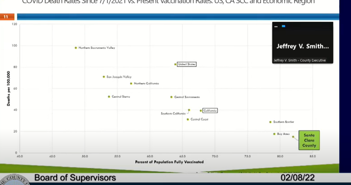 Here’s the video of yesterday’s Santa Clara County Board of Supervisors meeting (Feb 8, 2022) regarding COVID-19 (3:36 through at 5:29):