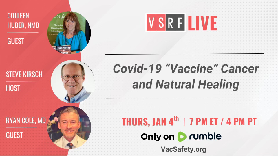 Tonight on VSRF LIVE, I will speak with respected Covid doctors and my friends, Dr. Ryan Cole, MD, and Dr. Colleen Huber, NMD, to discuss the critical issue of safeguarding the Covid-19 vaccinated from the ominous surge of turbo cancers that these vaccines seem to be causing. Dr. Cole, a double board-certified pathologist with vast expertise in immunology and virology, has diagnosed over 500,000 patients and shared crucial insights on the adverse effects of the Covid "vaccines" in the US Senate and various media platforms.