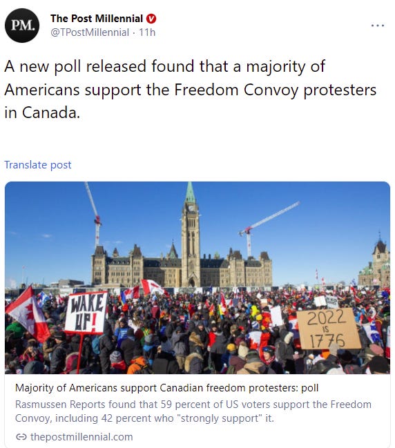 Truckers: Canada is using force to clear the truckers out of Ottawa. People who help the truckers have had their bank accounts frozen. Watch this video and look at the sidebar for more videos. They’ve arrested the organizers. This isn’t over. We’re next. The support for the trucker is 59% in America. They are way more popular than our leaders in Washington. Imagine what the support is in Canada!