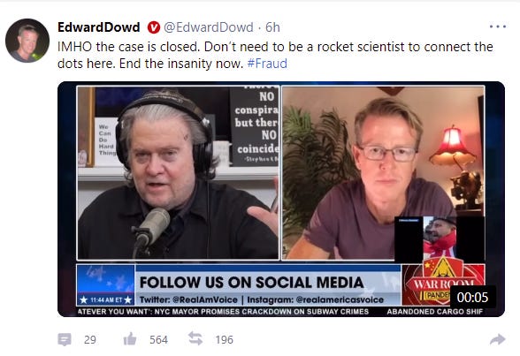 Investor Ed Dowd blows the whistle on clinical trial fraud: Ed’s a friend of mine. He got a lot of coverage for predicting the collapse of Moderna stock. He’s been on Steve Bannon and Alex Jones talking about the fraud in the Pfizer trial. His point is that all the data is confirmatory: the whistleblower data, Maddie de Garay’s case, the VAERS data, the DMED data, the OneAmerica data, data from other insurance companies confirmed the OneAmerica dramatic 40% rise in deaths, and funeral homes are booming too. Couple that with the embalmer stories and more. He thinks Moderna will go to zero. He is not short any of these stocks so he has no conflict of interest. See this article and this article. Note: He has no smoking gun on fraud in the Moderna trial, but the last time I looked, the VAERS data shows it is more deadly than Pfizer. Check out Ed’s GETTR tweets for more info.