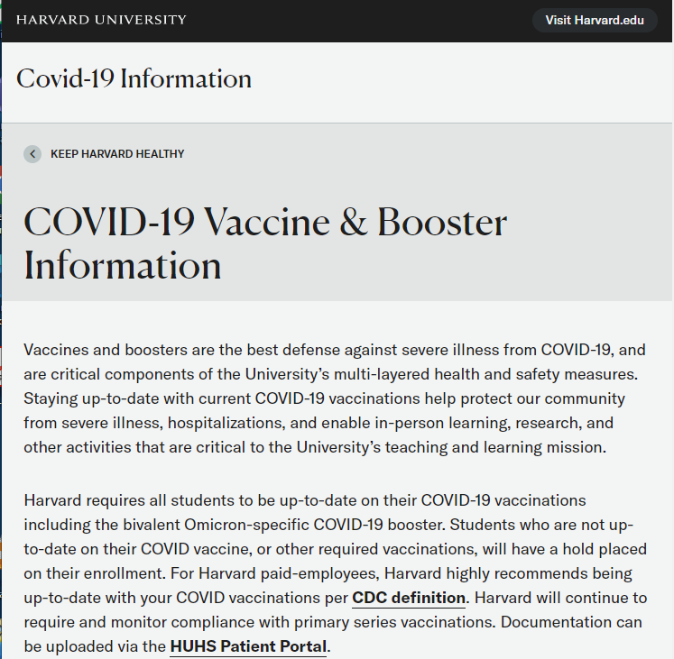 Many universities are still mandating that students get vaccinated and boosted. The scientific evidence is crystal clear on boosters: they are unethical. The colleges don't care.