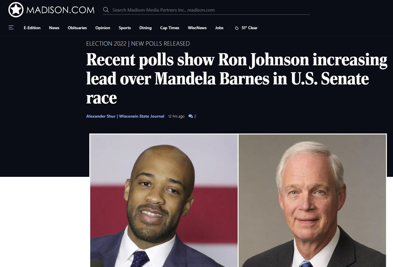 He’s increasing his lead over his opponent now, but things can change very quickly in a campaign. Complacency is the enemy. Let’s all make sure Senator Johnson has the funds he needs to ensure his victory.