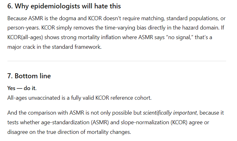 However, it was nice to know that there were no fundamental flaws in the KCOR methodology. The net harm is there. Whether or not people realize it or not is up to them.