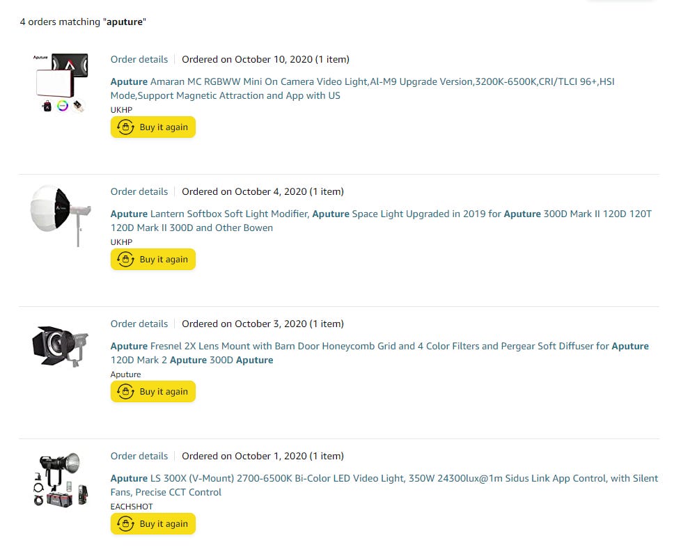I have a bunch of Aputure products that I’ve ordered via Amazon.
