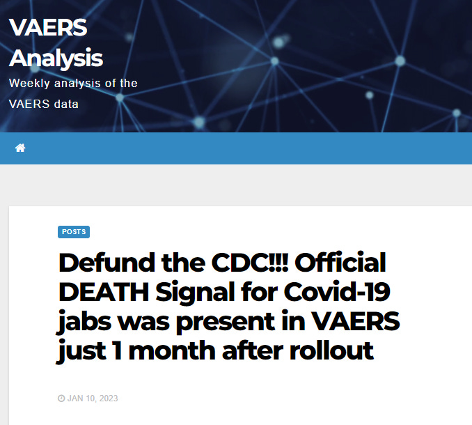 Thanks to the brilliant work of VAERS Analysis, we now know that the DEATH safety signal was first triggered in VAERS less than a month after the vaccines rolled out. Nobody at the CDC cared enough to alert the public that a killer vaccine had been unleashed.