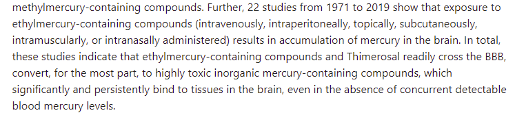 Here it is right from the abstract of the recent 2020 paper Examining the evidence that ethylmercury crosses the blood-brain barrier: