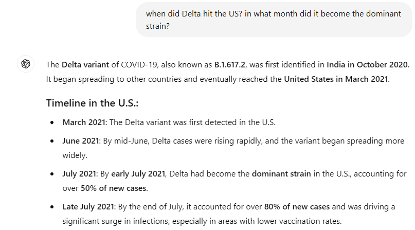 Why did the CFR drop? It was the variant. Check this out and note that when a strain becomes dominant, it matches up to the date when the CFR drops!