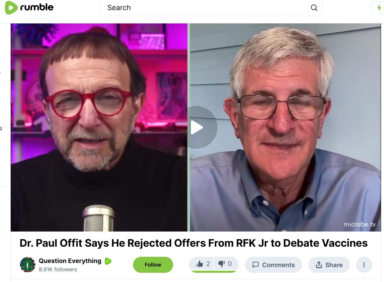 In the video, Offit reiterates what he wrote on his Substack about debates: that science should be “debated” in the literature.