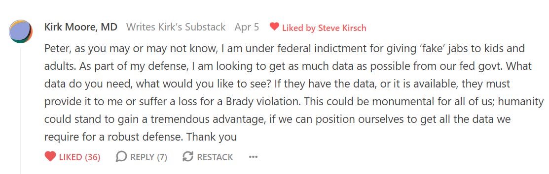 They charged Kirk Moore with a crime. Dr. Moore is allowed discovery to prove his innocence. This means he gets access to Medicare, NDI, and all state death and vaccination records. JACKPOT!