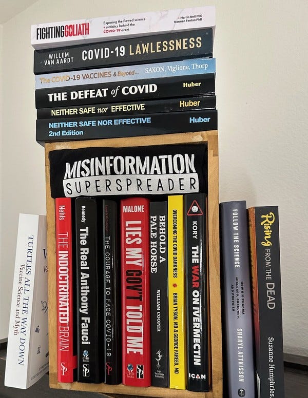 As we all know, Steve Kirsch is the number one Misinformation Superspreader in the world (according to Google Search™.) How can the rest of us ever catch up? Start by procuring the Misinformation Superspreader Library from the Vaccine Safety Research Foundation (VSRF), now featured in our fundraising raffle. After reading these books you’ll be an expert Misinformation Superspreader, too!