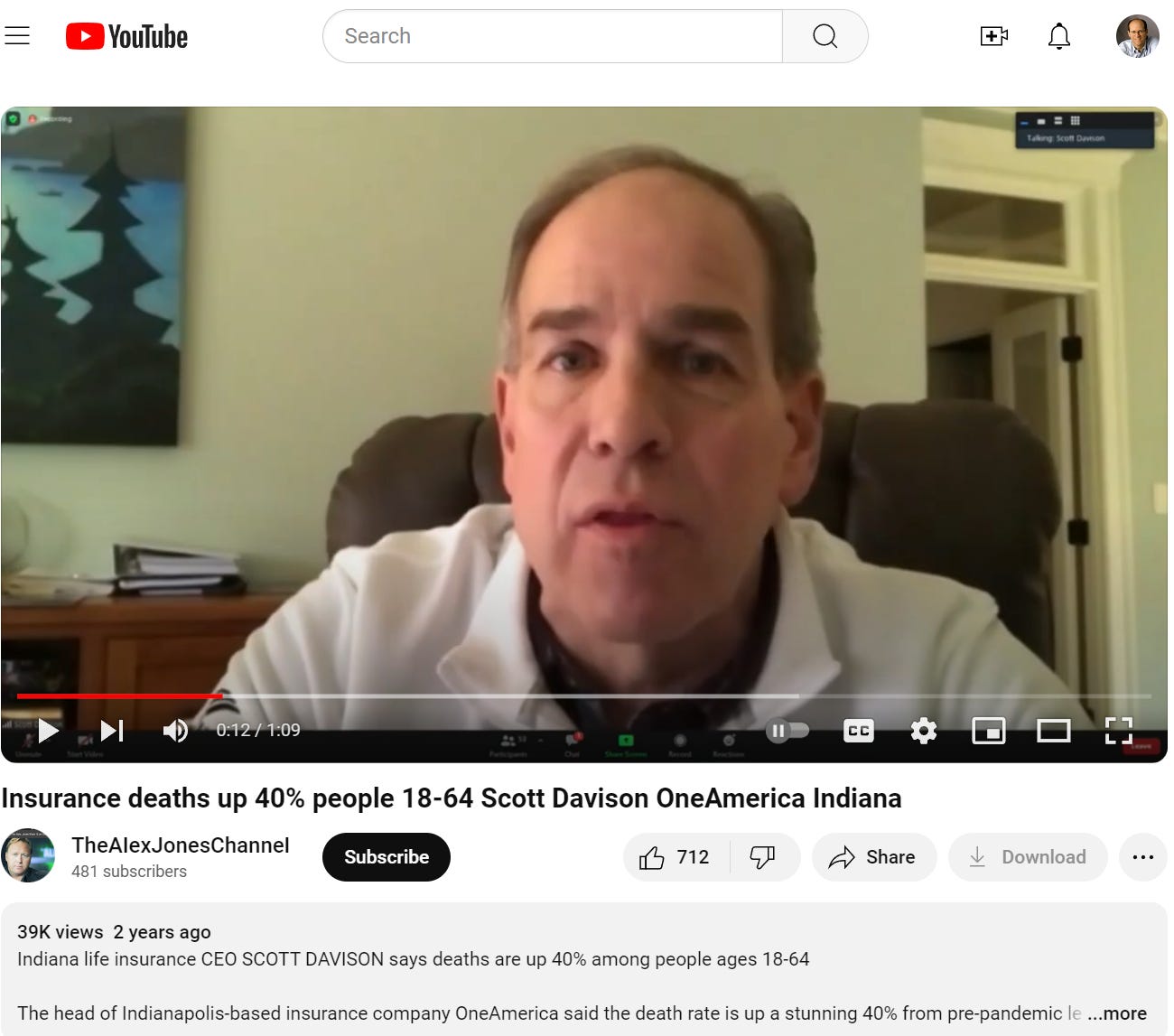 Start by reading this story, “Indiana life insurance CEO says deaths are up 40% among people ages 18-64.” Read the whole thing now.