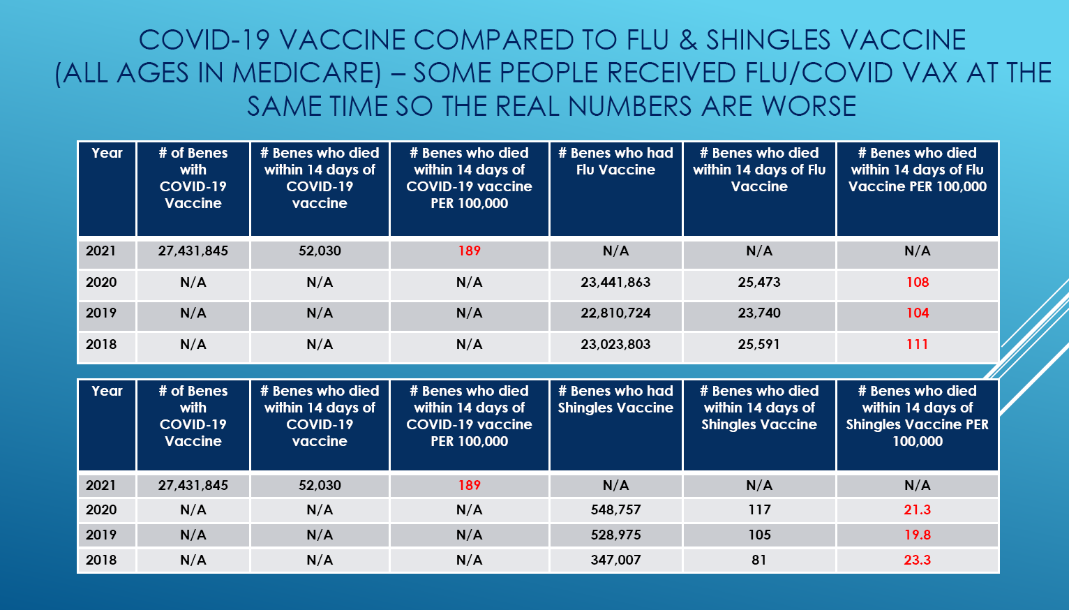 The CDC never released the CMS or SSA data because the CDC would have too hard a time explaining it, so they keep it hidden from public view since their job is to protect the public from any information that would cause vaccine hesitancy.