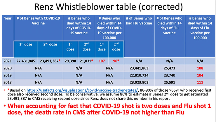 Failed to explain that the rates of death over 14 days for the COVID vaccine were the same as the flu vaccine. He claims this proves that the differences in VAERS is thus all due to overreporting.