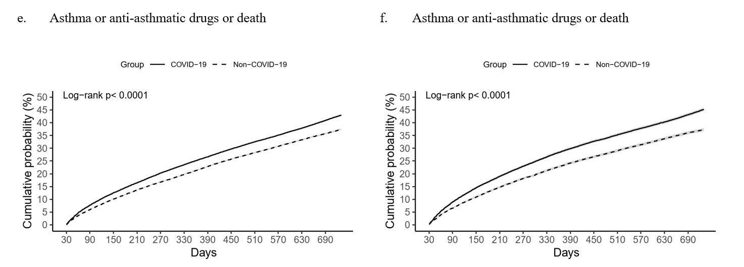 This is essentially showing the morbidity rate (for asthma, asthma drugs, or death) in the unvaccinated (left) and vaccinated (right). They are nearly identical!!! If comorbidities really were so much worse in the vaccinated that they are susceptible to sickness, we’d expect to see a difference between the curves. They look very similar.