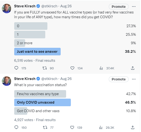 My Twitter followers are nearly 90% COVID unvaccinated. But the questions are directed to vaccinated and unvaccinated followers: