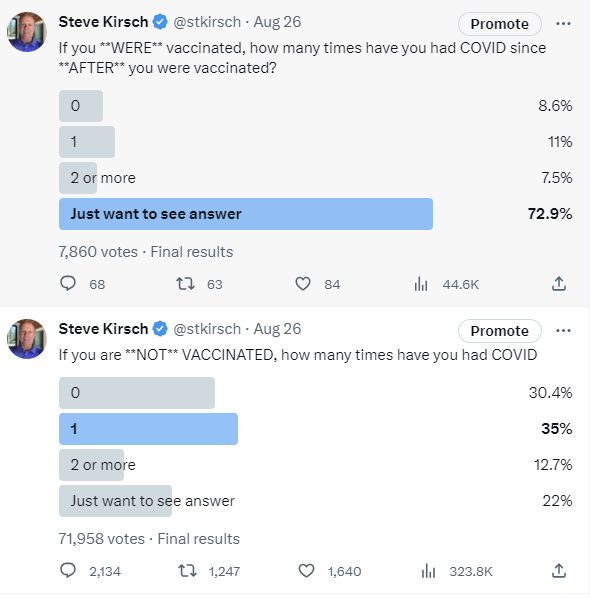 So both the Substack and Twitter surveys were large and the data clearly showed the unvaccinated were better off.
