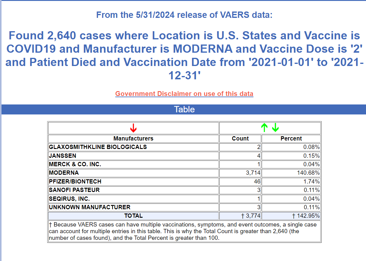 Moderna has disproportionately higher deaths reports in VAERS from the shots