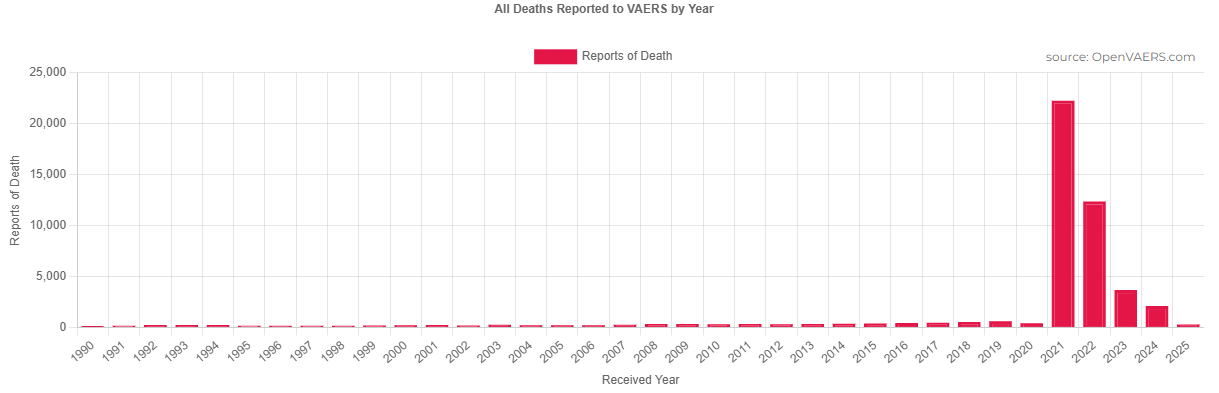 Overall, there were over 17,000 deaths reported to VAERS for the COVID vaccines given in the period of interest (2021-2022) from US sources (there were a similar number from other countries).