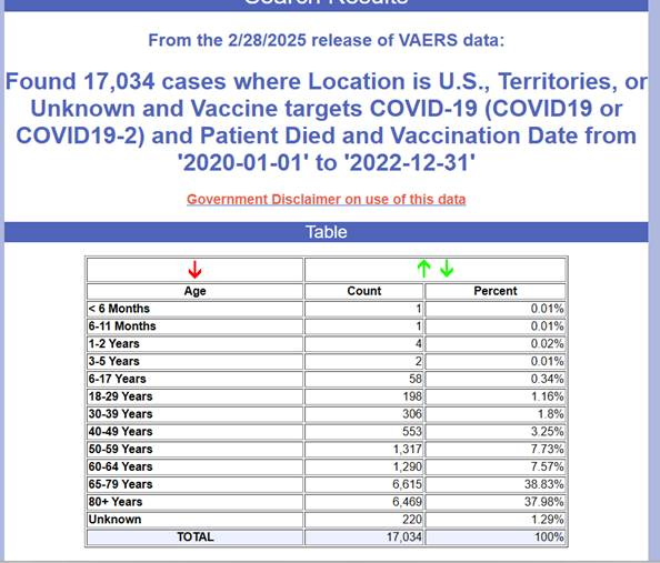 Let’s look at Jan 2021 in VAERS for over 65 and we find 522 people died in the month they were vaccinated which is 1/3 of the total reports. So our 135K in 14 days is likely only at least 1/3 of the total deaths which gets us to an estimated 405K deaths due to the shots.