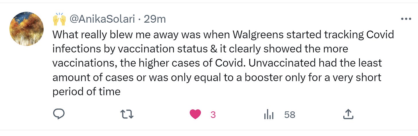 The Walgreen’s data shows that it isn’t just healthcare workers who are more likely to get infected with more vaccines, it’s everyone: