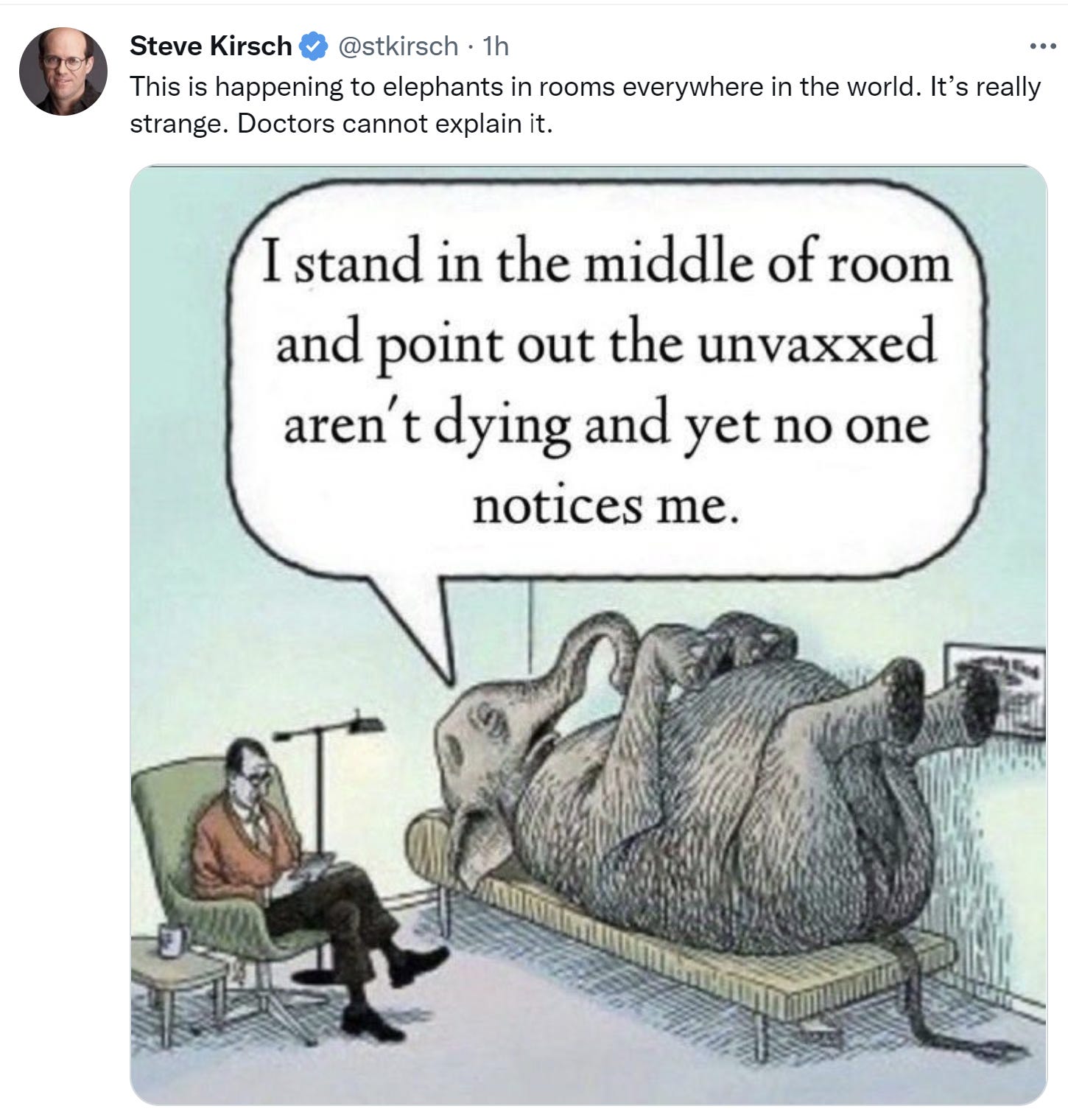 In fact, just to make things more clear, after the study came out, every healthcare practice and hospital in the entire world should have done a reverse mandate: that you’d be fired if you got vaccinated since the study showed that you were at increased risk. I’m not aware of this happening anywhere in the world. Did I miss that?