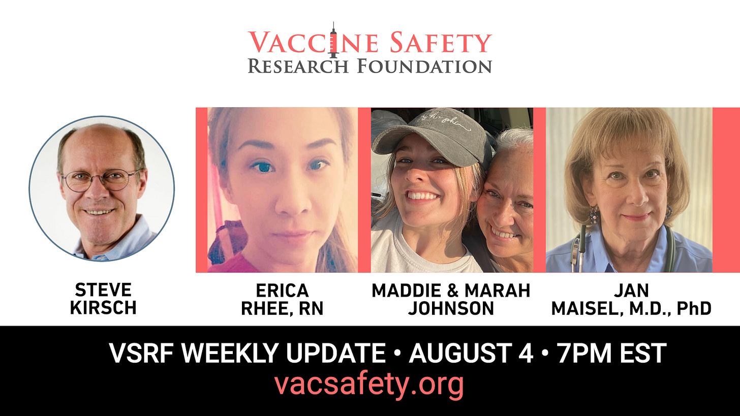I will also be speaking with nurse Erica Rhee, RN, medical student Maddie Johnson (and her mother, Marah) all forced to take the jabs. All grievously injured by them.