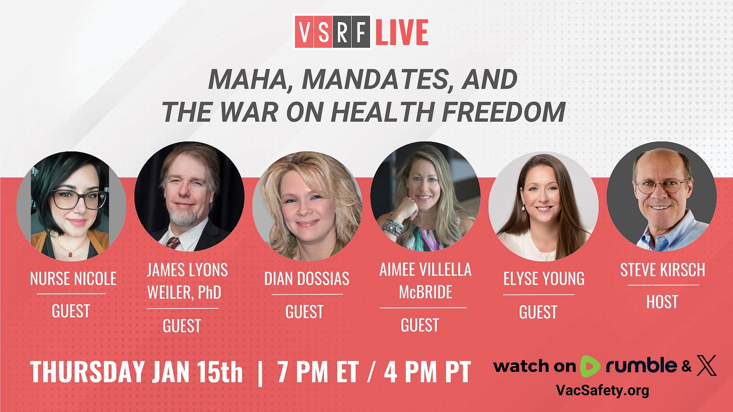 Tonight on VSRF Live, we’re bringing together a rare panel of scientists, healthcare professionals, policy experts, and frontline advocates to assess the real state of medical freedom in America, not as it appears in press releases, but as it’s being lived right now by families, students, and healthcare workers.