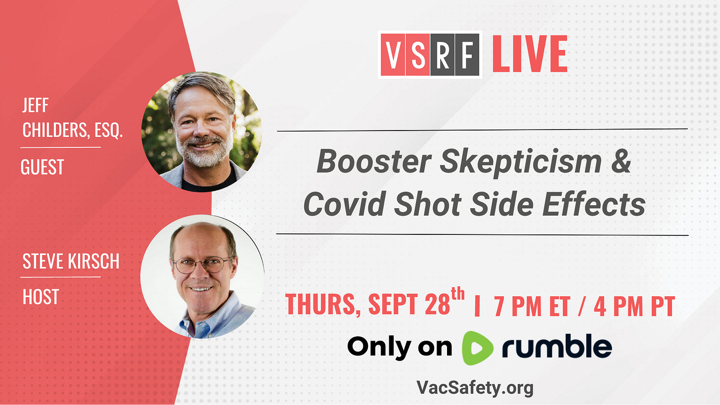 I am back! Tonight, we have a great line-up for our show with Civil Rights Attorney Jeff Childers. Jeff, who was a keynote at our Covid Litigation Conference, joins Lisa Laehy, Director of Research at VSRF as we discuss the latest round of Covid-19 boosters, the return of the mandates, and new evidence regarding side effects from previous rounds of the Covid-19 vaccines.