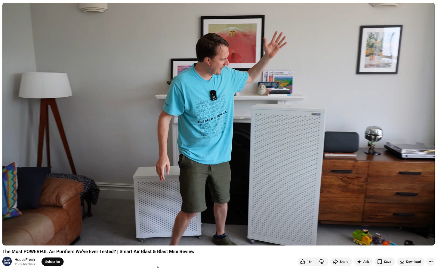 Check out this review entitled: The Most POWERFUL Air Purifiers We’ve Ever Tested? | Smart Air Blast & Blast Mini Review. The Smart Air Blast MKII sells for around $1,000 and is whisper quiet.